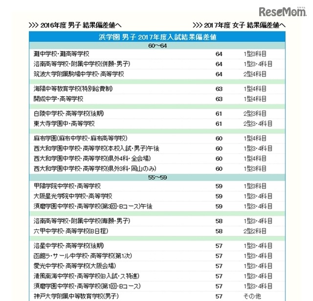 中学受験 関西 偏差値